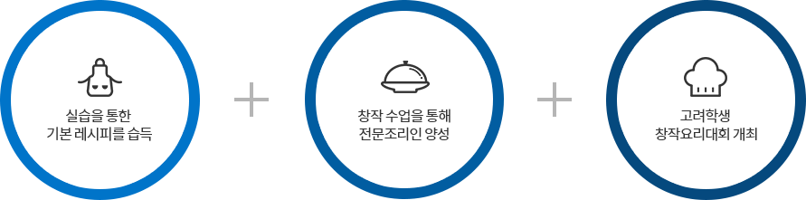 전문조리인을 양성하고 있습니다. 또한 고려학생 창작요리대회를 매년 8월에 개최하고 있으며, 특급 호텔 메인 쉐프와 과정 교수들의 공정한 평가로 순위를 정하고