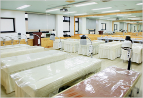 2F | 커피실습실1, 커피실습실2, 피부미용실, 헤어메이크업실, 디자인실습실, 강사실, 학장실, 교학처, 학사지원실, 입학처, 강의실 |