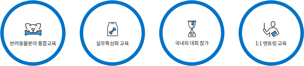 반려동물 전문가의 양성을 위하여 다양한 분야의 실용적인 커리큘럼을 개발하여 실무 위주의 교육을 하고 있습니다.