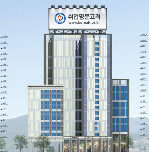 | 2F | 커피실습실1, 커피실습실2, 피부미용실, 헤어메이크업실, 디자인실습실, 강사실, 학장실, 교학처, 학사지원실, 강의실 |