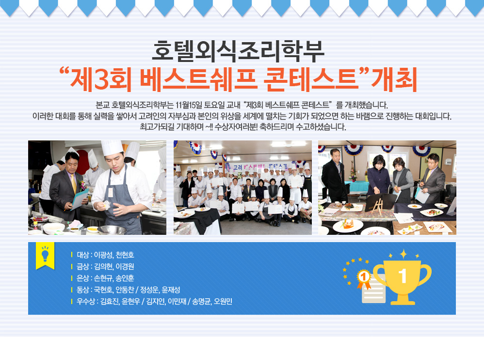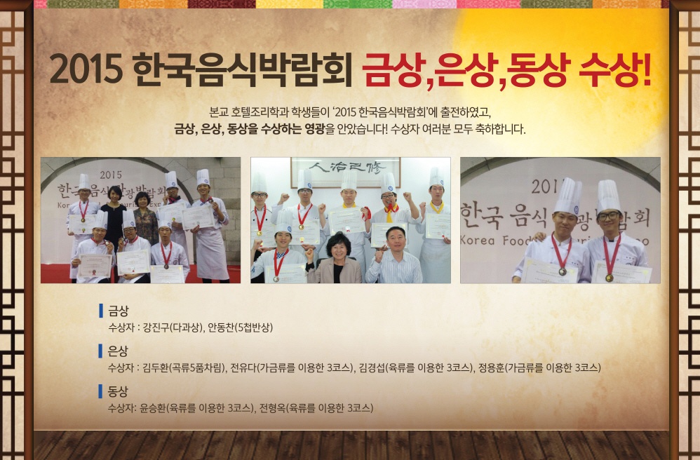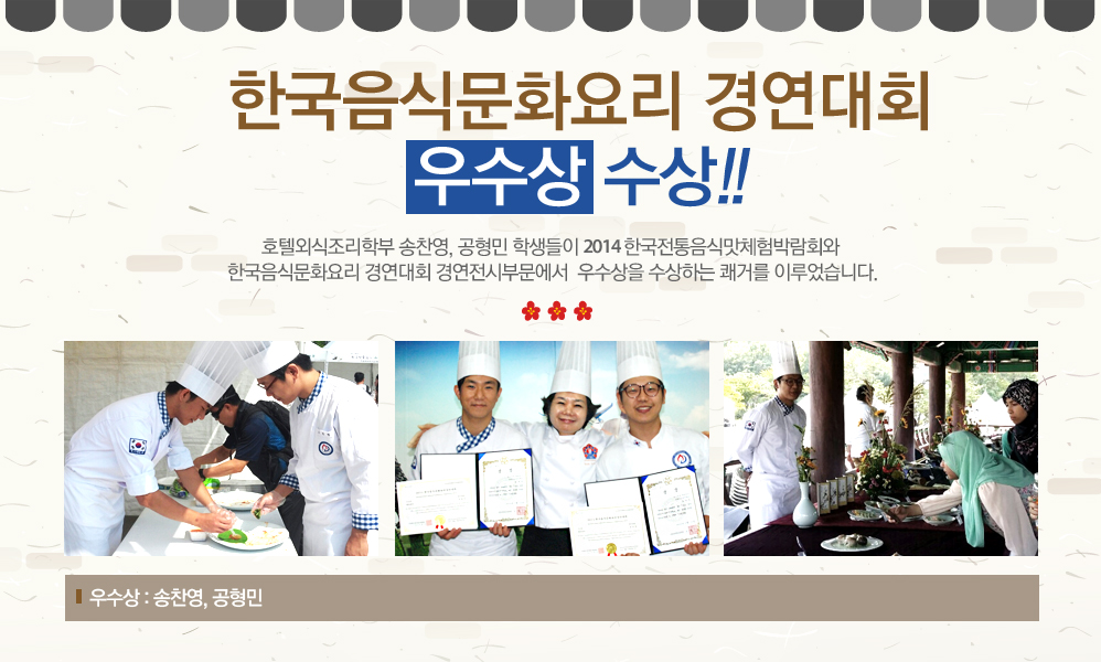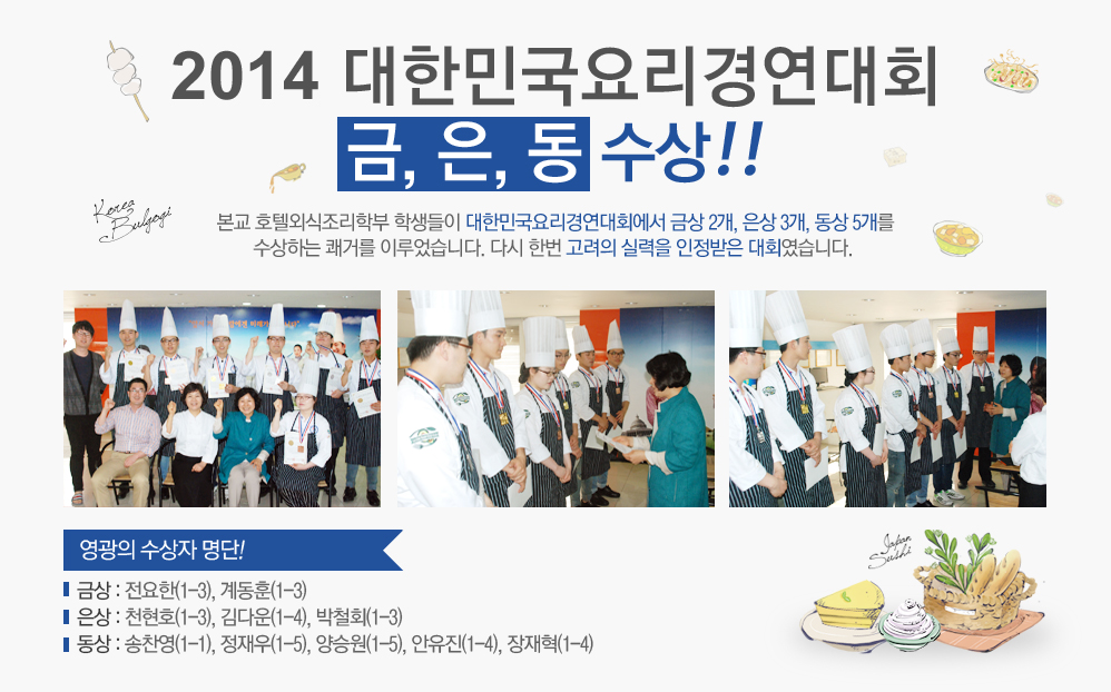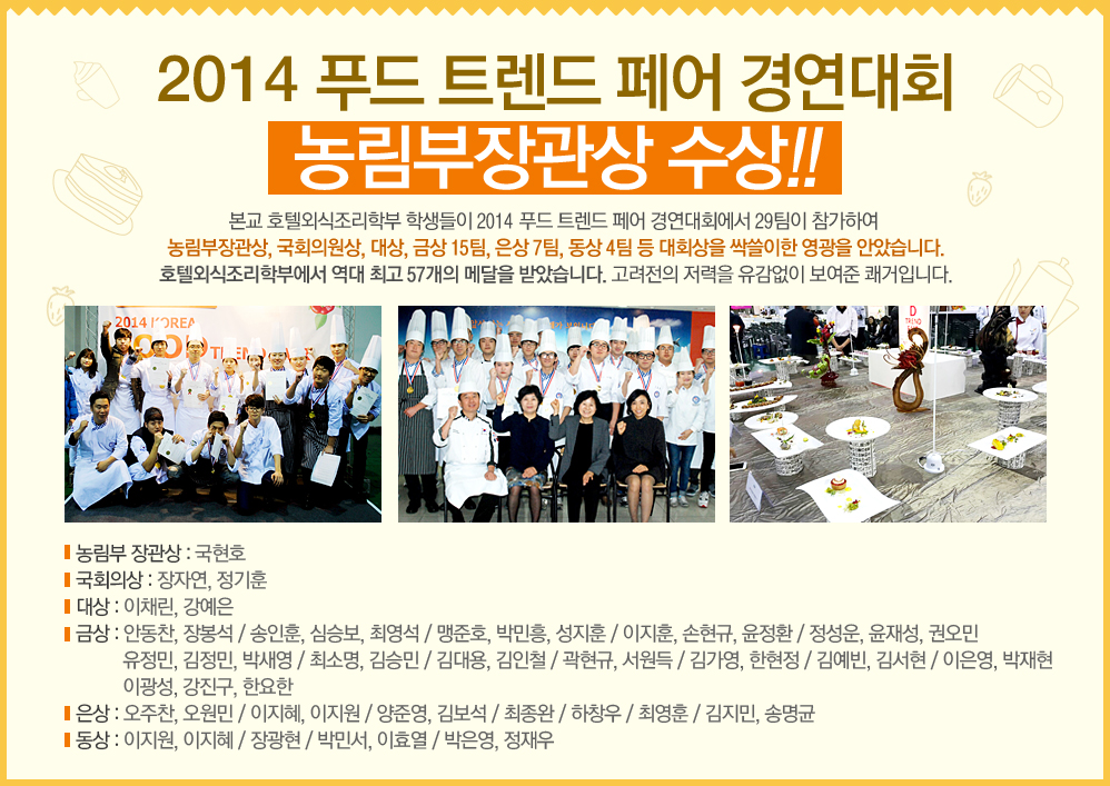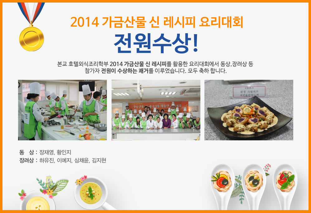 - [12월] 호텔외식조리학부~!! 2014 가금산물 신 레시피 요리대회 전원 수상!