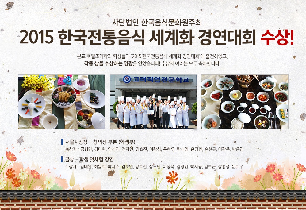 - [4월] 2015 한국전통음식 세계화 경연대회 수상!